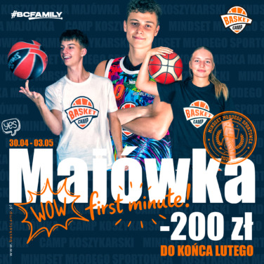 Konsultacja Szkoleniowa, czyli Basket CAMP w MAJÓWKĘ potrwa 4 dni treningowe i odbędzie się w dniach 30.04.2026 – 03.05.2026 (przejdź niżej, aby zobaczyć ofertę na FERIE ZIMOWE 2026). Oprócz intensywnych treningów koszykówki planujemy warsztaty mentalne i zdrowego żywienia. W trakcie pobytu w Wałczu odbędziesz kilkanaście sesji treningowych. Konsultacja Szkoleniowa i regularny Basket Camp tygodniowy to dwa oddzielne eventy szkoleniowe. Nie ma obowiązku jechania na Konsultację, by potem jechać na Camp – jednak zachęcamy do uczestnictwa w naszym szkoleniu w każdej wolnej – od klubu – chwili. To doskonała okazja na mocną dawkę treningów jeszcze przed wakacjami.